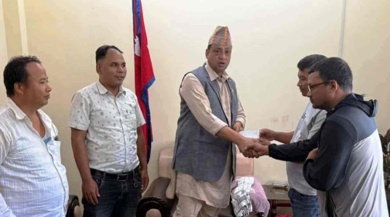 गाउँपालिकाका जनप्रतिनिधि र नेपाली काँग्रेसका स्थानीय नेताहरूको उपस्थितिमा सोमबार मुख्यमन्त्री बानियाँले घर निर्माणको जिम्मा लिने पक्षलाई २ लाख रुपैयाँको चेक हस्तान्तरण गरेका हुन्।