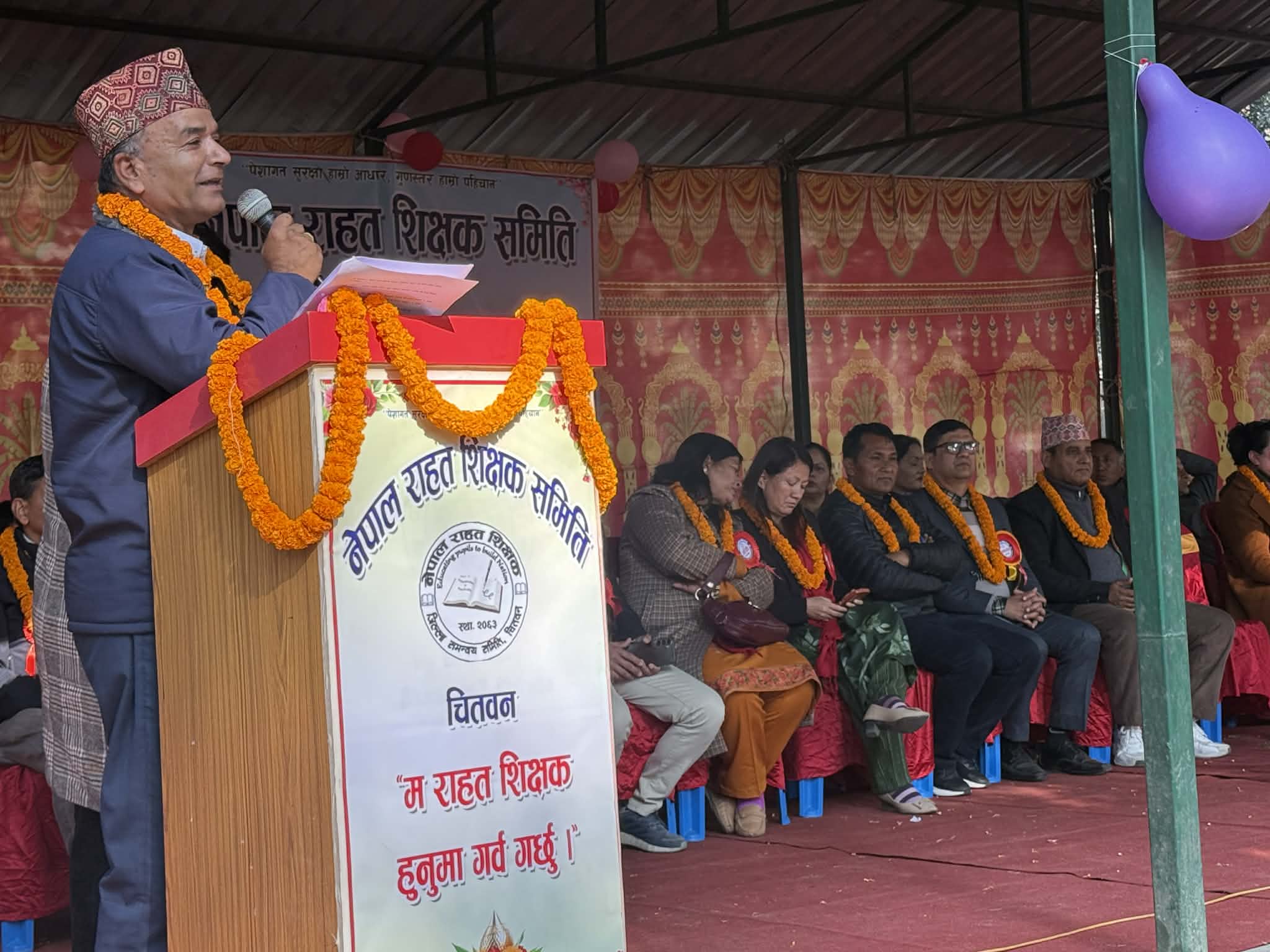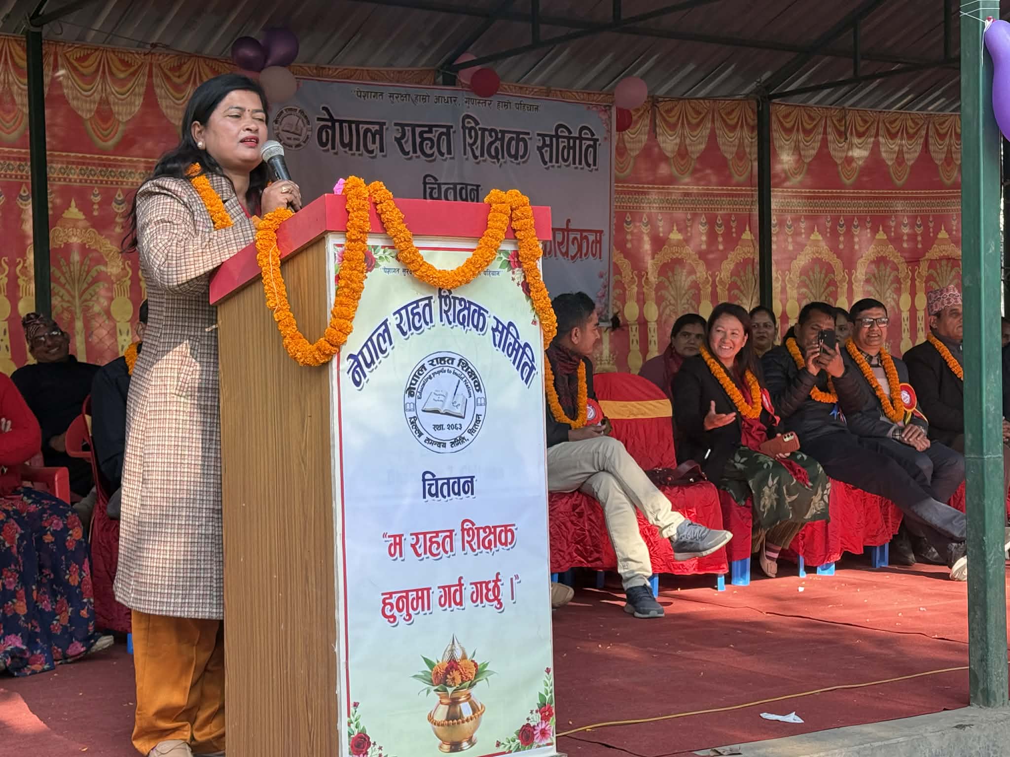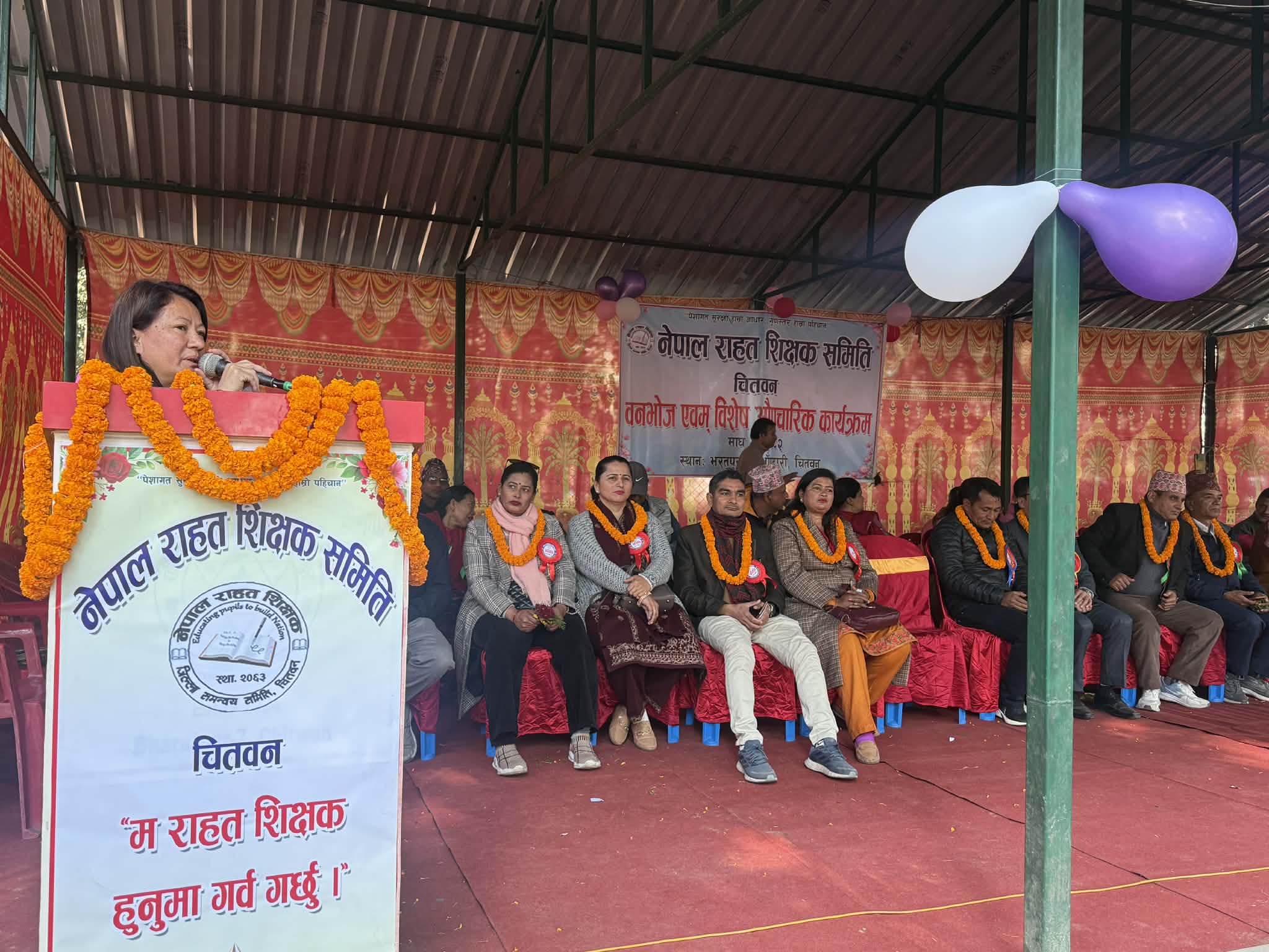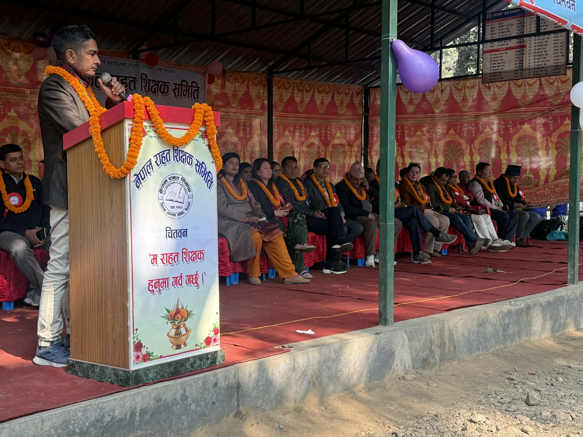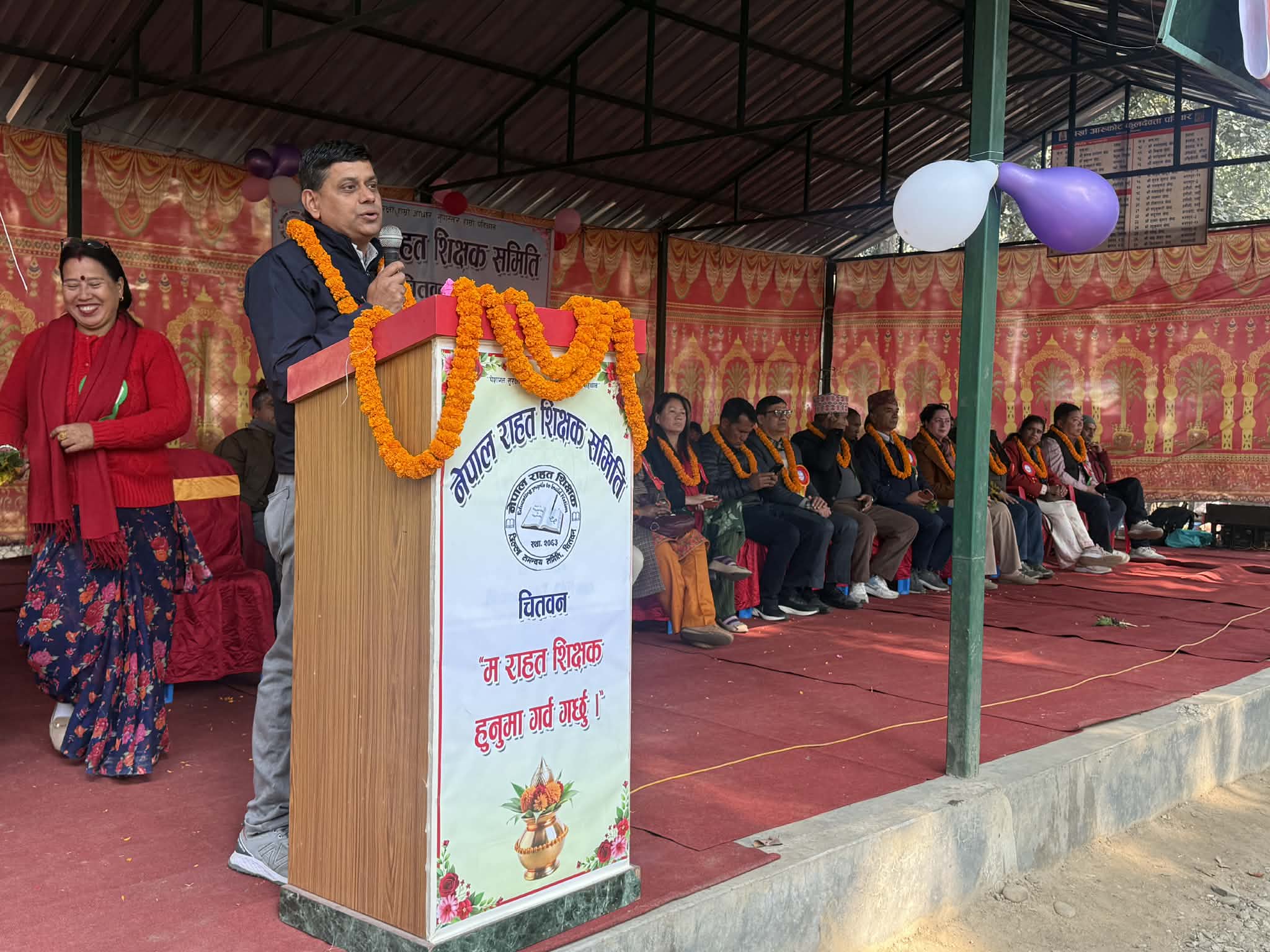 नेपाल राष्ट्रिय शिक्षक संगठन चितवनका सचिव तिलक कुवरले कार्यक्रम सफलताको कामना गर्दै आफुहरु राहात शिक्षकका माग र मुद्दामा सधै अग्र पंक्तिमा रहेर साथ् दिने बताउनुभयो I