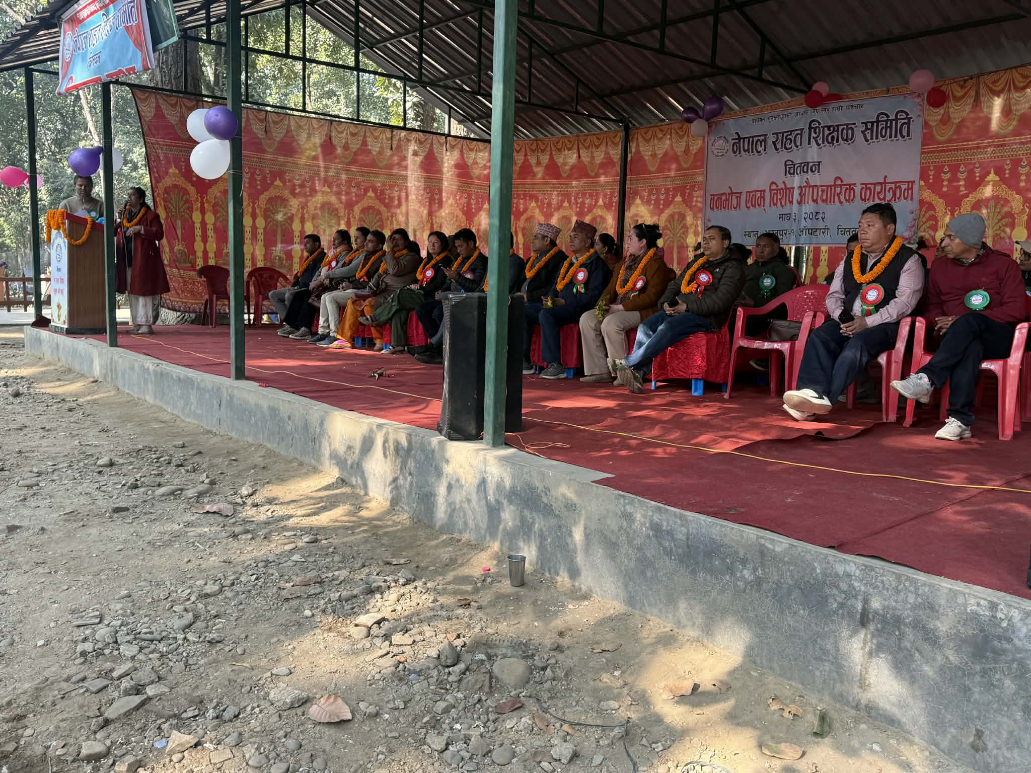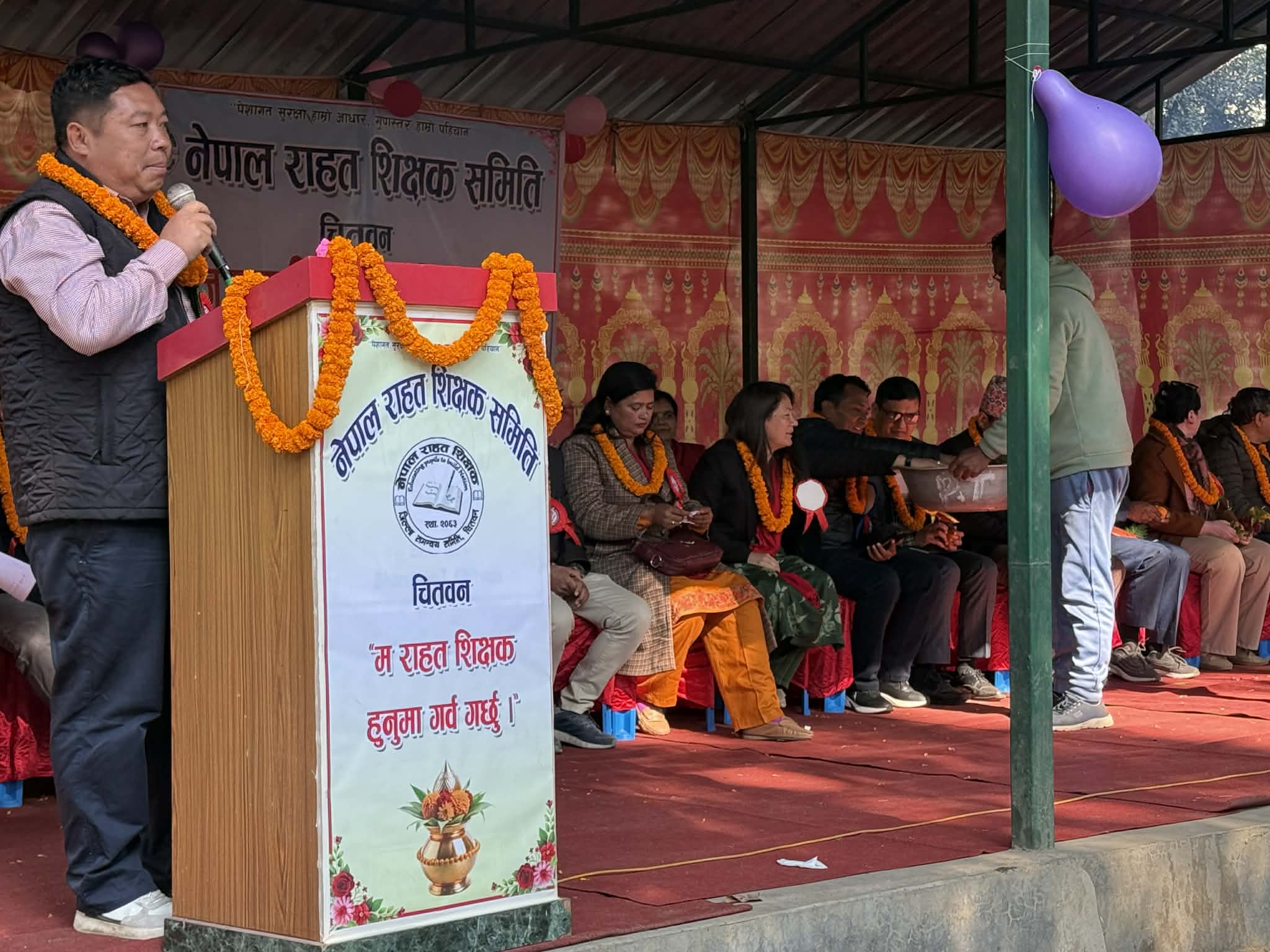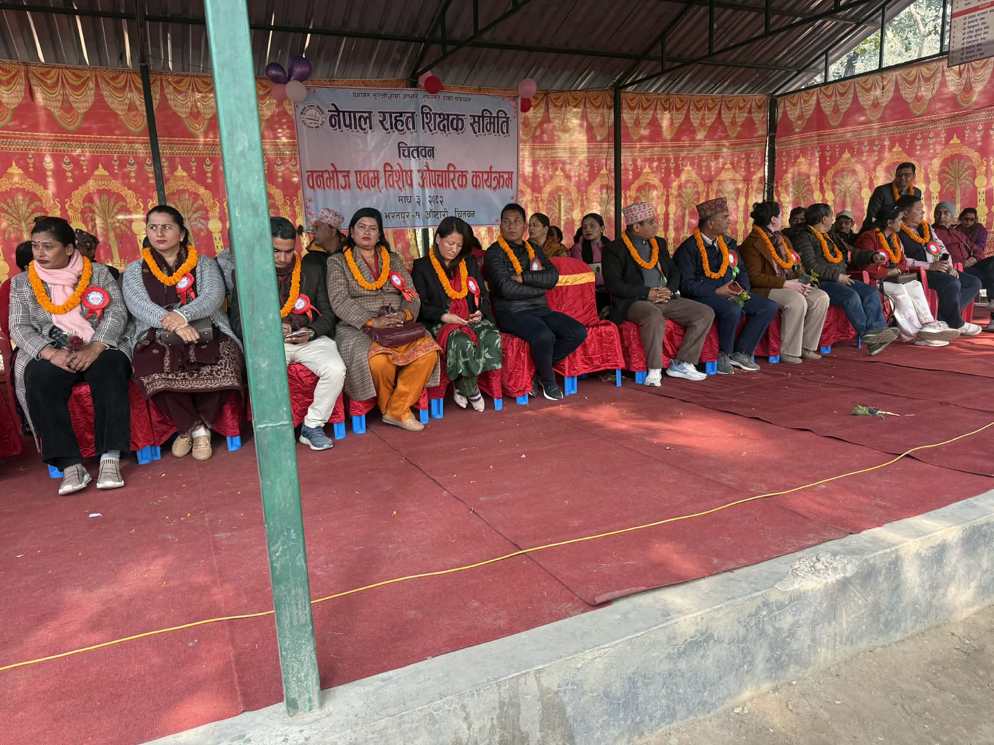 कार्यक्रम नेपाल राहत शिक्षक समिति चितवनका सचिव बुद्दिराम काफ्लेले संचालन गर्नुभएको थियो भने नेपाल राहत शिक्षक समिति चितवनका अध्यक्ष श्याम काफ्लेको अध्यक्षतामा कार्यक्रम समापन भएको थियो I