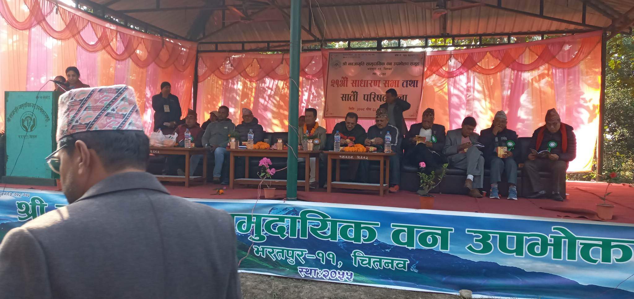 नव जागृति सामूदायिक वन उपभोक्ता समूहको २१ औं साधारणसभा तथा सातौं परिषद् भेलामा समूहका अध्यक्ष देव कुमार गुरुङ्गको सभापतित्वमा भएकोथियो भने कार्यव्रmम सञ्चालन संस्थाका सचिब विष्णु सापकोटाले गर्नु भएको थियो । स्वागत भाषण उपाध्यक्ष नारायण खड्काले गर्नुभएको थियो भने आर्थिक प्रतिवेदन संस्थाका कोषाध्यक्ष इश्वरी आचार्यले र कार्य प्रगति प्रतिवेदन संस्थाका सचिब विष्णु सापकोटाले पेश गर्नुभएकोमा परिषद् सदस्यहरुले ताली बजाएर समर्थन जनाउनु भएको थियो । उक्त सभामा वडा नम्बर ११ का वडाध्यक्ष कमल मल्ल, नेपाली काङ्ग्रेसका वडा सभापति अमर बहादुर लामा, नेकपा एमाले वडाध्यक्ष प्रकाश आचार्य, माओवादी वडा प्रतिनिधि शालिग्राम सापकोटा, राष्ट्रिय स्वतन्त्र पार्टी प्रतिनिधि विक्रम श्रेष्ठ, रा प्र पा प्रतिनिधि, संस्थाका कानुनी सल्लाहकार पूर्ण चन्द्र चापागाई, सल्लाहकार ज्ञानेन्द्र गिरी, तेजेन्द्र खड्का, पुस्तक गौतम, श्रीप्रकाश कडेल, प्रदेश सभासद इश्वर सापकोटा लगायतको आथित्यतामा सभा भएको थियो । भेलामा वडाबाट नवनिर्वाचित सभासद लगायत प्रमुख अतिथि, अतिथिहरुलाई सम्मान पत्र प्रदान गरिएको थियो । सामुदायिक वनको क्षेत्रभित्र रहेका अति बिपन्न परिवार मध्येबाट छनौट गरि ११ वटा ठेला गाडा पनि सामुदायिक वनको बार्शिक उत्सबको उपलक्ष्यमा प्रदान गरिएको थियो ।