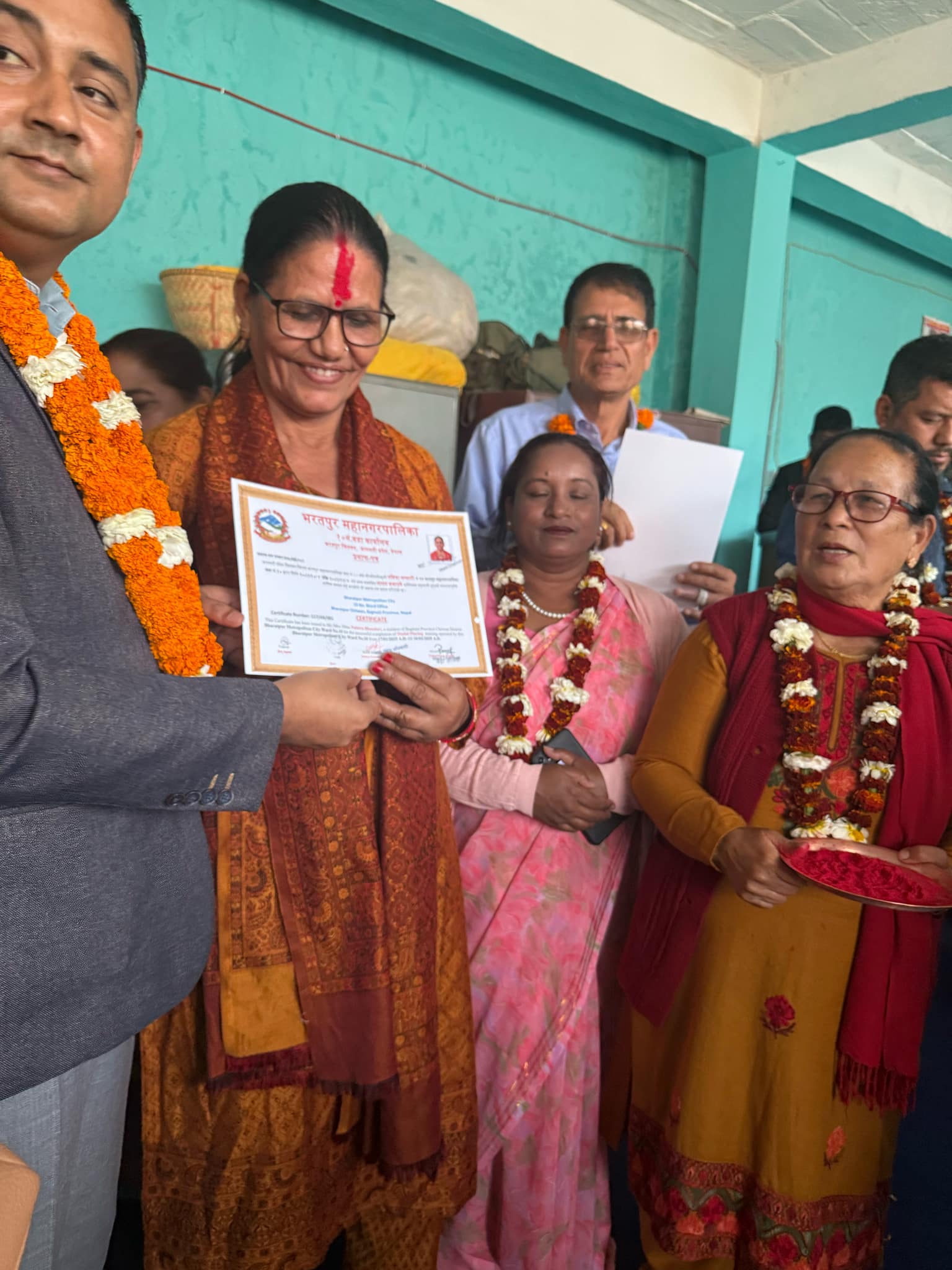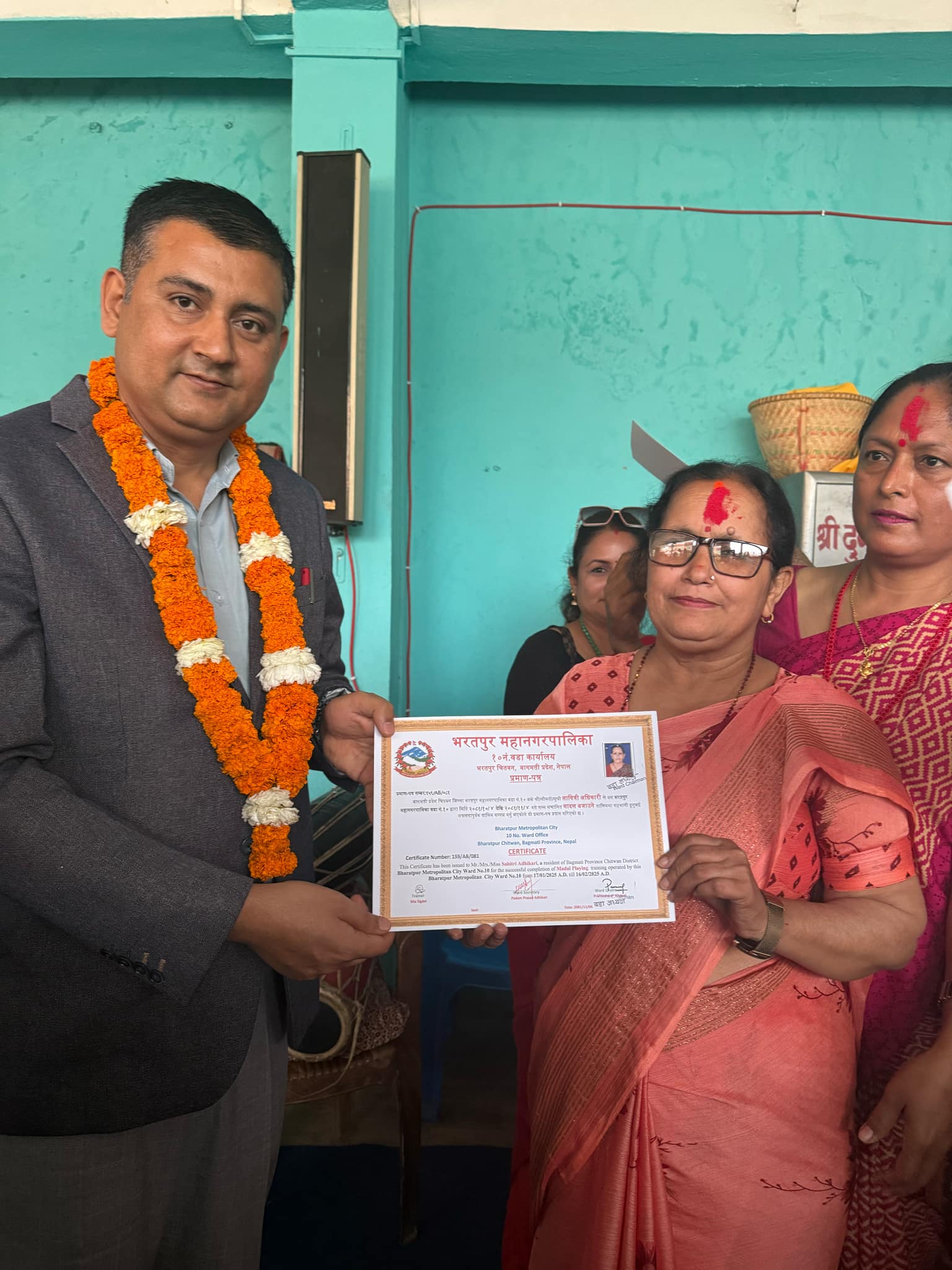 भरतपुर महानगरपालिका वडा नं १० द्वारा आफ्ना वडा भित्र बसोबास गर्ने १०३ जना नागरिकहरुलाई मादल , खैंजडी, मजुरा लगाएतका वाद्य वादन तालिम सम्पन्न गरी भव्य रूपमा कार्यक्रम समापन गरेको छ। वडाले सोही तालिम जनतासेवा सिपमुलक तालिम केन्द्र लाई सेवा प्रदायक संस्थाको रूपमा लिएर सोही संस्था सँग सहकार्य गरी कार्यक्रम चलाएको थियो। समापन कार्क्रमका प्रमुख अतिथि भरतपूर महानगरपालिका वडा नं १० का वडा अध्यक्ष परमेश्वर खनाल रहनु भएको थियो।त्यसै गरी विशिष्ट अतिथिहरुमा वडा सदस्यहरु सूर्य वदना हमाल,पार्वती नेपाली,रेशम राज थापा, नीरबहादुर लामा, वडा सचिव पदम प्रसाद अधिकारी रहनु भएको थियो। त्यसै गरी अतिथिहरुमा जेष्ठ नागरिक उपाध्यक्ष माधव प्रभा घिमिरे, टोल सुधार समिति अध्यक्षहरु रघुनाथ भण्डारी,चिन्तामनी गौतम, ह्रदयनाथ घिमिरे, दिनेश कटुवाल सहित मन्दिर व्यवस्थापन समितिका अध्यक्ष अम्बिका प्रसाद भण्डारी रहनु भएको थियो । समापन कार्यक्रममा उपस्थित सम्पूर्ण सहभागी हरुलाई सम्बोधन गर्दै हरेक नागरिक जिम्मेवार भइ आफ्नो कला , संस्कृति तथा परम्परा को जगेर्ना गर्नको लागि सबैमा अनुरोध गर्नुभयो। शुभकामना मन्तव्य कै क्रममा आफ्नो वडा भित्र शिक्षा,स्वास्थ्य,बाटो तथा अन्य अति आवश्यक विकास निर्माणका कार्यमा आफू र आफ्नो टीम सधैं आफ्ना नागरिक सँगै रहेर कार्य गरिरहेको र आगामी दिनमा पनि सँगै रहेर विकास निर्माणका कार्यमा आफू लागि पर्ने बताउनु भयो।साथै आफूभित्र रहेका दुःख, पीडा तथा व्यक्त गर्न मन् लागेका कुराहरू स्वतः स्फूर्त भनेर समाधानको पाटो खोज्न पनि सल्लाह दिनुभयो। वहाँले यस तालिम अत्यन्तै उत्कृष्ट तरिकाले सम्पन्न गरेकाले जनता सेवा सिपमुलक तालिमका केन्द्रलाई विशेष धन्यवाद दिनुभयो। त्यसै गरी वडा सदस्य सूर्य वदना हमालले आफूले सिकेका सीपलाई प्रयोगमा ल्याउनुपर्नेमा जोड दिनुभयो। वडा सदस्य पार्वती नेपालीले हरेक सहभागीलाई शुभकामना दिँदै तालिम को सही सदुपयोग गर्न सुझाव दिनुभयो। त्यसैगरि वडा सदस्य रेशम राज थापाले सम्पूर्णमा शुभकामना दिँदै यस्ता तालिमले आफ्नो संस्कृति जगेर्ना गर्ने हुनाले सबैलाई प्रयोगमा ल्याउन अनुरोध गर्नुभयो। वडा सदस्य निर बहादुर लामाले सम्पूर्णमा शुभकामना दिँदै उत्कृष्ट तालिम दिई सबैलाई खुशी बनाइएकोमा जनता सेवा सिपमुलक तालिम केन्द्र लाई धन्यवाद दिँदै आगामी दिनमा पनि यस्तै गरी तालिम प्रदान गर्न सुझाव दिनुभयो। वडाका वडा सचिव पदम प्रसाद अधिकारी ले थोरै बजेटमा पनि १०३ जनालाई समावेश गराई सफलतापूर्वक तालिम सम्पन्न गराईएकोमा संस्थालाई विशेष धन्यवाद दिँदै सम्पूर्ण सहभागी हरुलाई तालिमको महत्त्व बुझी व्यवहारमा लागू गर्नु पर्नेमा जोड दिनुभयो।कार