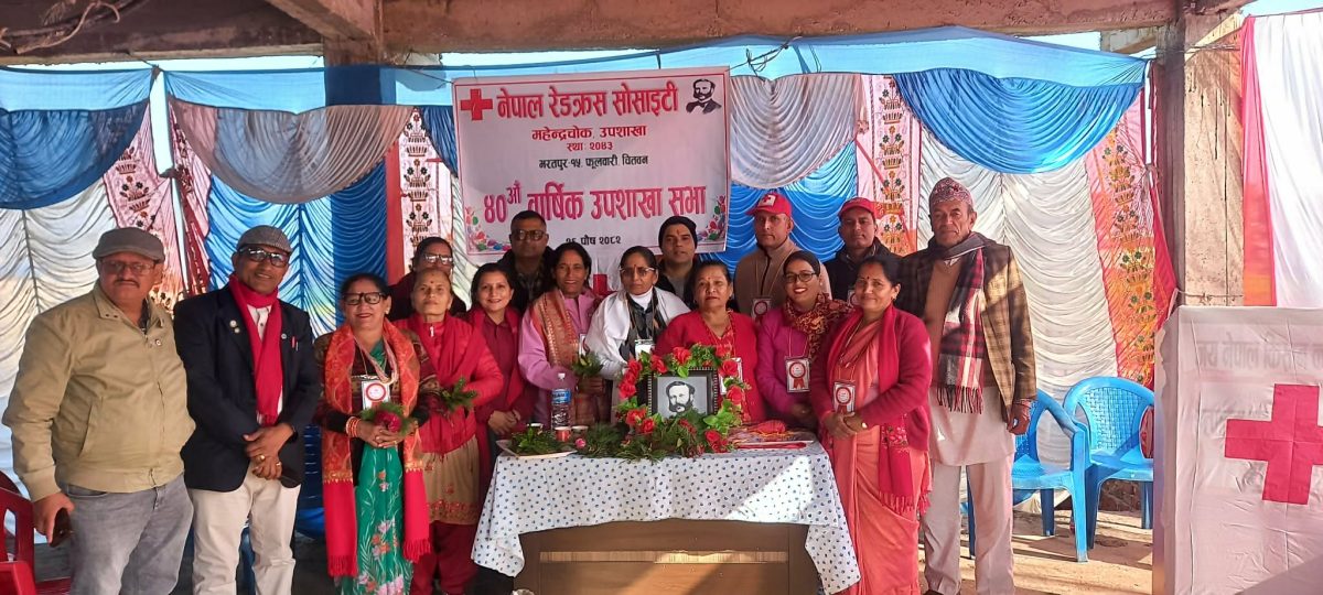नेपाल रेडक्रस सोसाइटी महेन्द्रचोक उप्शाखाको ४० औं वार्षिक उपशाखा सभा उपशाखा का सभापति जीवन के सी को अध्यक्षता र भरतपुर महानगरपालिका वडा नं . १५ का वडा अध्यक्ष श्री श्रीकृष्ण देवकोटाको प्रमुख आतिथ्यतामा सम्पन्न ।