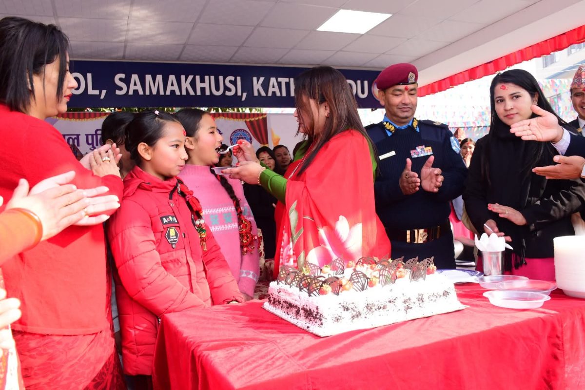 नेपाल प्रहरी विद्यालय सामाखुशी काठमाडौंको प्राङ्गणमा रहेको मन्दिरमा सरस्वती पुजा तथा अक्षरारम्भ कार्यक्रम सम्पन्न गरी नेपाल प्रहरी श्रीमती संघको तर्फबाट विद्यालयमा अध्ययनरत विद्यार्थी