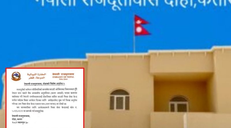 कतारमा बसोबास गर्ने नेपाली नागरिकलाई मध्यपूर्वको वर्तमान तनावको कारण स्वदेश फर्किन दूतावासले आवेदन दिन आग्रह गरेको छ। दूतावासले वैध कतार आईडी भएका नेपालीहरूले साउदी अरबको विमानस्थलमार्फत नेपाल फर्किन सक्ने व्यवस्था मिलाएको जनाएको छ। इच्छुक नागरिकहरूले ताशिर साउदी भिसा सेवा केन्द्रमार्फत आवेदन दिन सक्नेछन् भने दूतावासले सेवा केन्द्रको फोन नम्बर पनि सार्वजनिक गरेको छ।