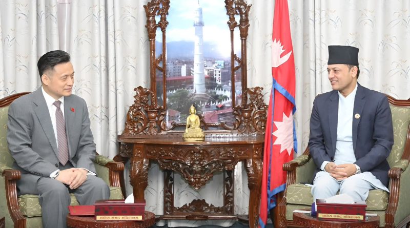 सभामुख डोलप्रसाद अर्याल र नेपालका लागि चिनियाँ राजदूत चाङ माओमिङ बीच शिष्टाचार भेटवार्ता भएको छ। भेटमा द्विपक्षीय सम्बन्ध, संसदीय सहकार्य, विकास साझेदारी तथा क्षेत्रीय र अन्तर्राष्ट्रिय विषयमा विचार आदानप्रदान भएको जनाइएको छ।भेटका क्रममा सभामुख अर्यालले नेपाल–चीन सम्बन्ध ऐतिहासिक, मैत्रीपूर्ण र पञ्चशीलको सिद्धान्तमा आधारित रहेको उल्लेख गर्दै यसलाई अझ सुदृढ बनाउनुपर्नेमा जोड दिएका छन्। उनले ‘एक चीन नीति’प्रति नेपालको पूर्ण प्रतिबद्धता दोहोर्याउँदै नेपालको भूमि चीनविरुद्ध प्रयोग हुन नदिने स्पष्ट पारे।