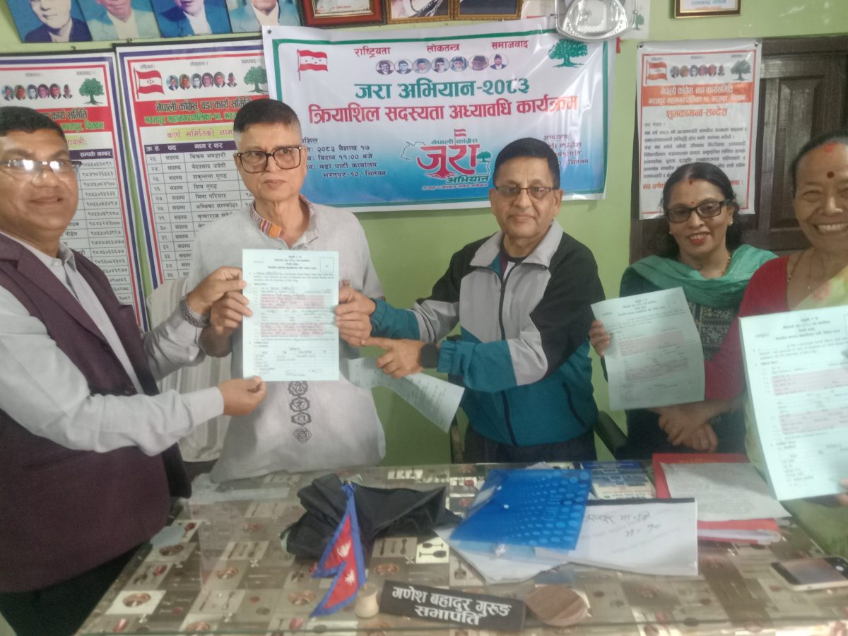 नेपाली काग्रेस केन्द्रीय कार्यालयकाे अभियान अन्तरगत चितवनमा जिल्लामा संन्चालन हुन गईरहेकाे जरा अभियान भरतपुरमहानगरपालिका १० स्याउलिबजारमा कार्यक्रमकाे १२- ११ बजे शुभरम्भ गर्नुभयाे ।कार्यक्रमम नेपाली काग्रेस चितवनका नेता महासमिति सदस्य प्रकाश अधिकारि ले सदस्यताकाे जरा अभियान फारम भरि कार्यक्रमकाे शुभारम्भ गर्नुभयाे ।